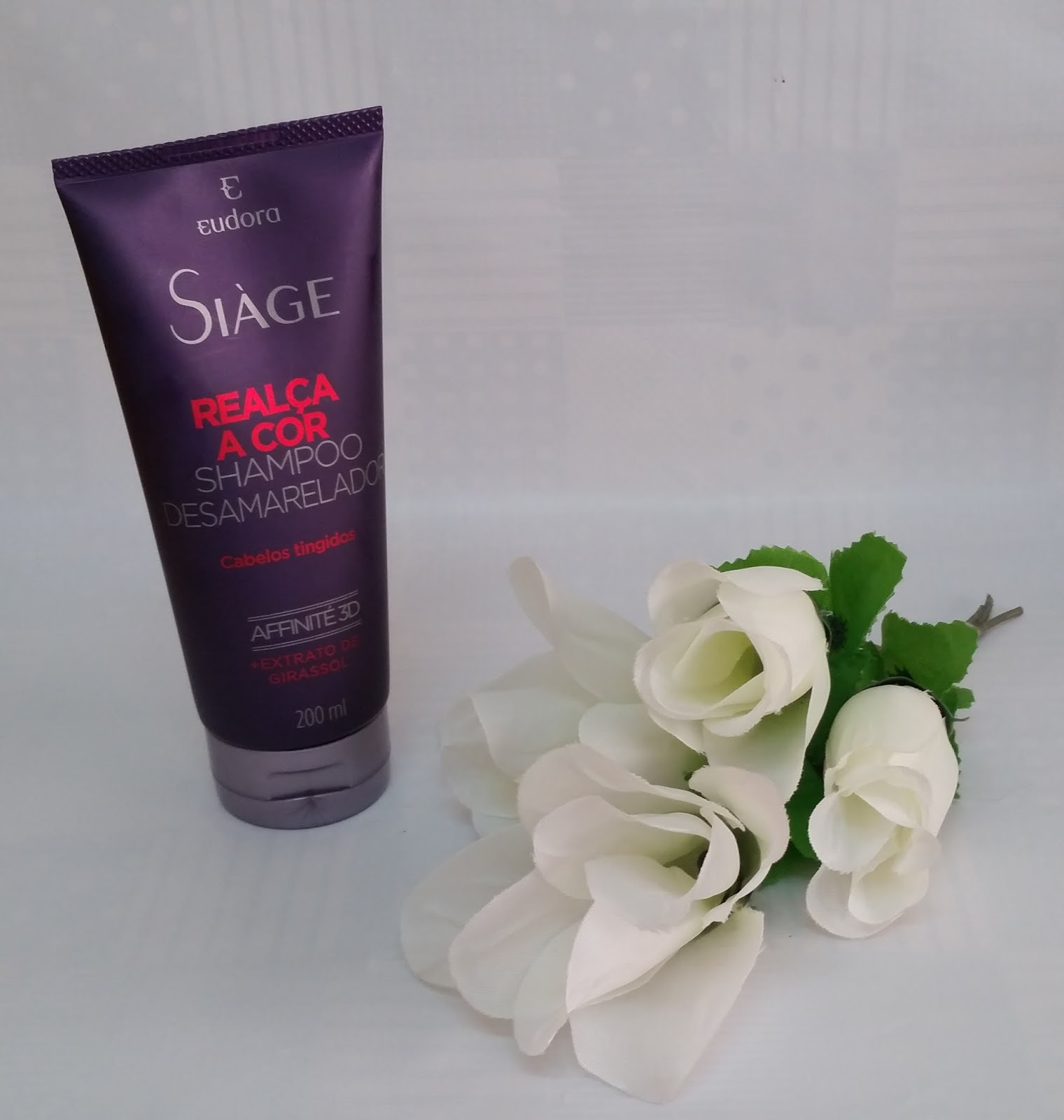 O que diz a marca: "SE SEUS CABELOS PEDEM POR REALCE DA COR: EUDORA SIÀGE REALÇA A COR. Diminui e previne o reflexo amarelado a partir do primeiro uso. Enriquecido com Extrato de Girassol conhecido pelo seu alto poder antioxidante, o Shampoo Desamarelador Eudora Siàge Realça a Cor limpa sem ressecar, realça a cor, evita o reflexo amarelado em cabelos loiros ou brancos. Seus cabelos com mais brilho e cor intensa."